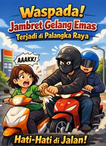 PALANGKA RAYA, INFOKALTENG – Aksi jambret menimpa seorang warga di Jalan Yos Sudarso, Kota Palangka Raya, Selasa (31/3/2026). Sri Mulyani kehilangan gelang emas jenis USA berbentuk tabung seberat 24,90 gram senilai lebih dari Rp21 juta. Kejadian berlangsung usai korban selesai mengisi bahan bakar di SPBU. Saat dalam perjalanan pulang, dua pelaku yang mengendarai sepeda motor memepet…