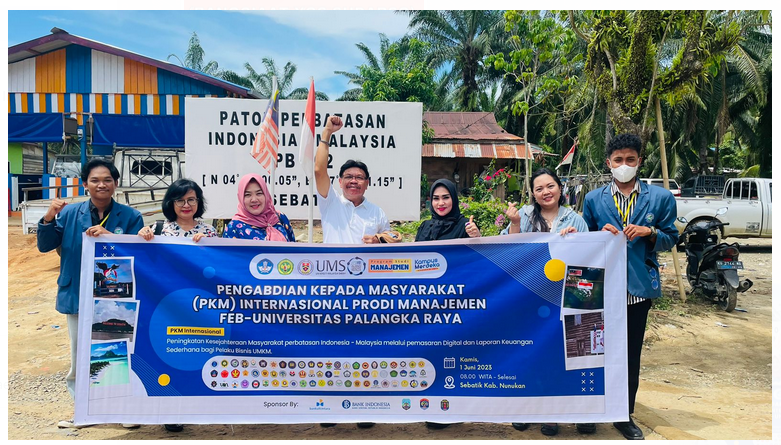 PALANGKA RAYA, INFOKALTENG – Program Studi Manajemen Fakultas Ekonomi dan Bisnis Universitas Palangka Raya (UPR) bersama Universitas Malaysia Sabah (UMS) melaksanakan kegiatan Pengabdian kepada Masyarakat (PKM) internasional yang berfokus pada peningkatan kesejahteraan masyarakat perbatasan Indonesia–Malaysia.